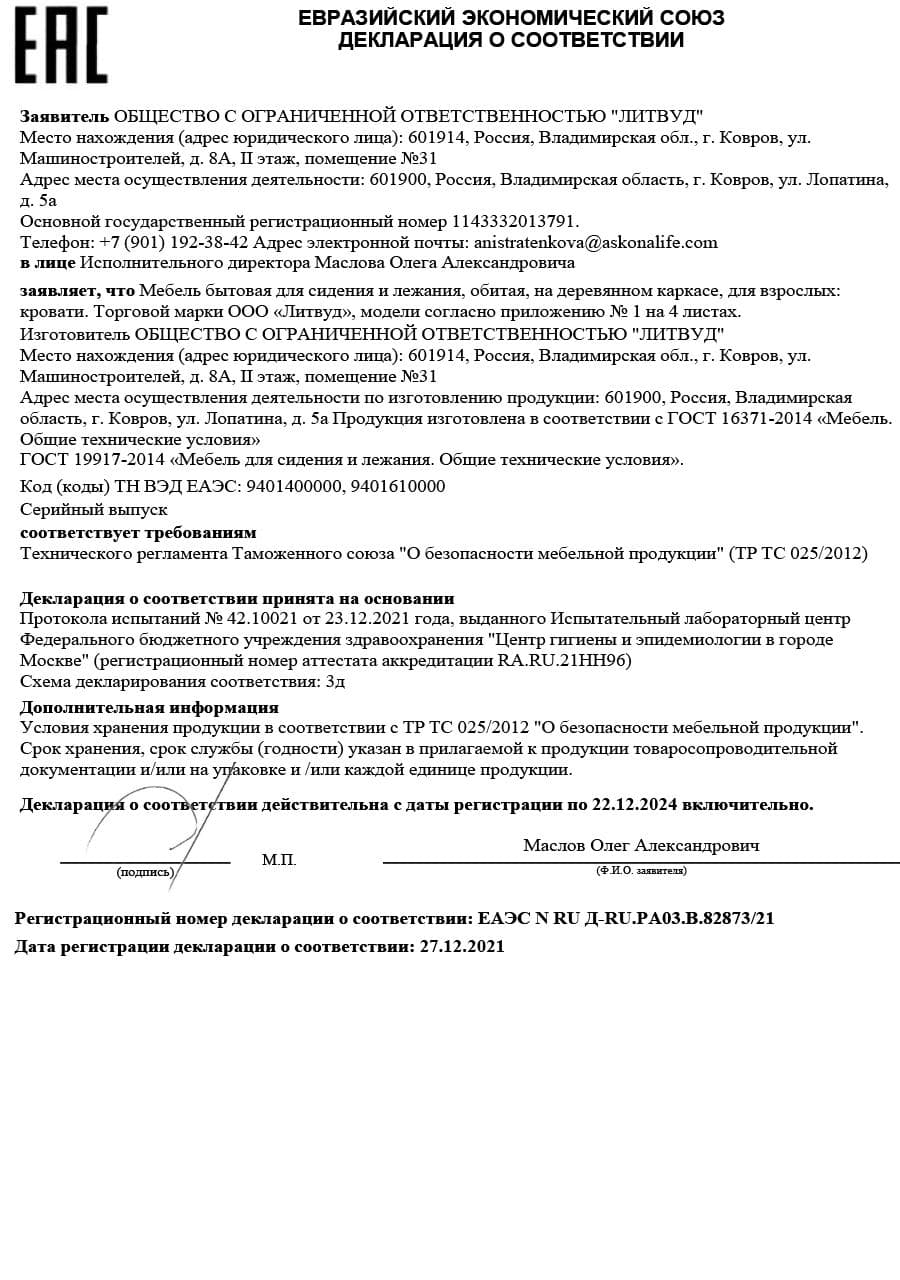 Гарантия распространяется на матрасы, кровати, основания и аксессуары представленные на нашем сайте.